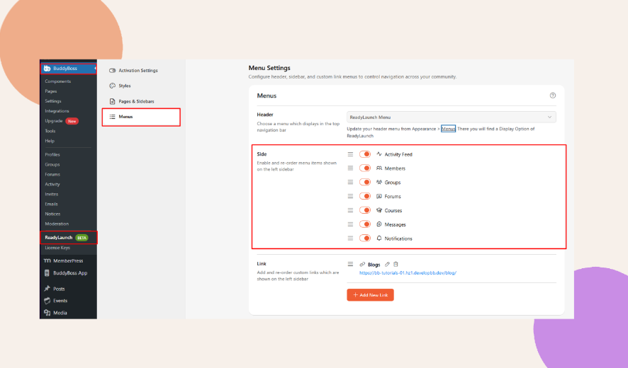 Control which links appear in the sidebar and reorder them to improve usability. A well-structured sidebar helps members find what they need faster.